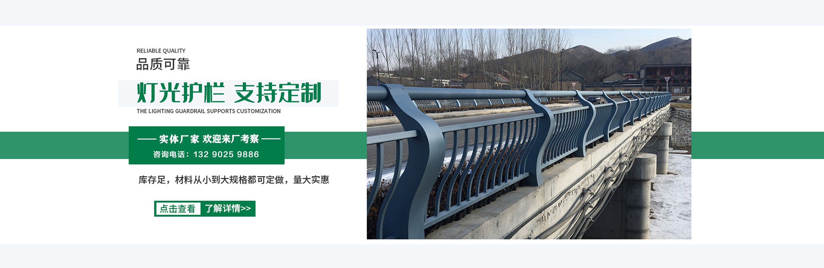 山東崇發金屬制品有限公司位于“江北水城“”之稱的聊城,地理位置優越,交通方便。公司占地面積50000平方米,建有標準化廠房及辦公樓等配套設施,建筑面積30000平方米?! 」臼且患以O計、銷售、安裝為一體的護欄工程企業,本公司主要生產各種燈光護欄,防撞護欄,橋梁護欄,鋁合金護欄,不銹鋼復合管護欄,河道護欄等。公司擁有先進的全自動激光切割設備和機器人焊接設備,能夠保證護欄產品的精度和表面光潔度?! 」緝瀯菀?、專業性強1、設計、提供和安裝各種護欄工程。擁有護欄設計、銷售與安裝為一體的完整體系。 2、應用領域:防撞護欄、橋梁護欄、河道護欄、燈光護欄、道路護欄等?! 《?、價格優勢公司擁有獨立的生產車間,無論管材還是立柱鋼板及表面處理都可在本公司內自行加工完成,減少中間環節,給客戶提供合理的價格,優質的產品?! ∥覀儗⑹冀K堅持“開拓國際市場,信譽就是效益”的經營理念,憑借一批思想統一、團結拼搏、業務熟練、對客戶高度負責的團隊力量,與廣大客戶攜手共進,合作雙贏,一起迎接明天的輝煌!...